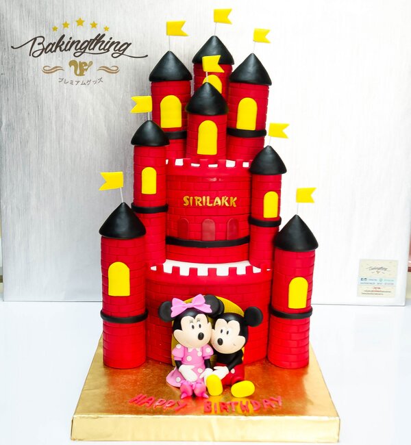 เค้ก 3 มิติ ปราสาท Micky and Minnie Mouse ขนาด 10 ปอนด์ ปราสาท 2 ชั้น